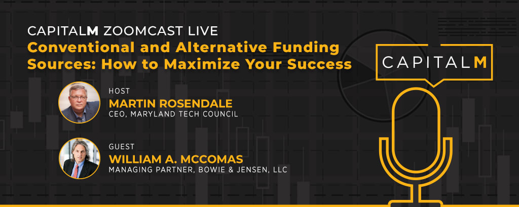 Join Maryland Tech Council CEO, Marty Rosendale and William A. McComas, Esquire, Managing Partner, Bowie & Jensen to learn more about funding sources for your company. William will share his insight on both conventional and alternative financing and why you would choose one over the other. The conversational will cover risks and benefits of these funding sources and when and why you should get a lawyer involved in the process.